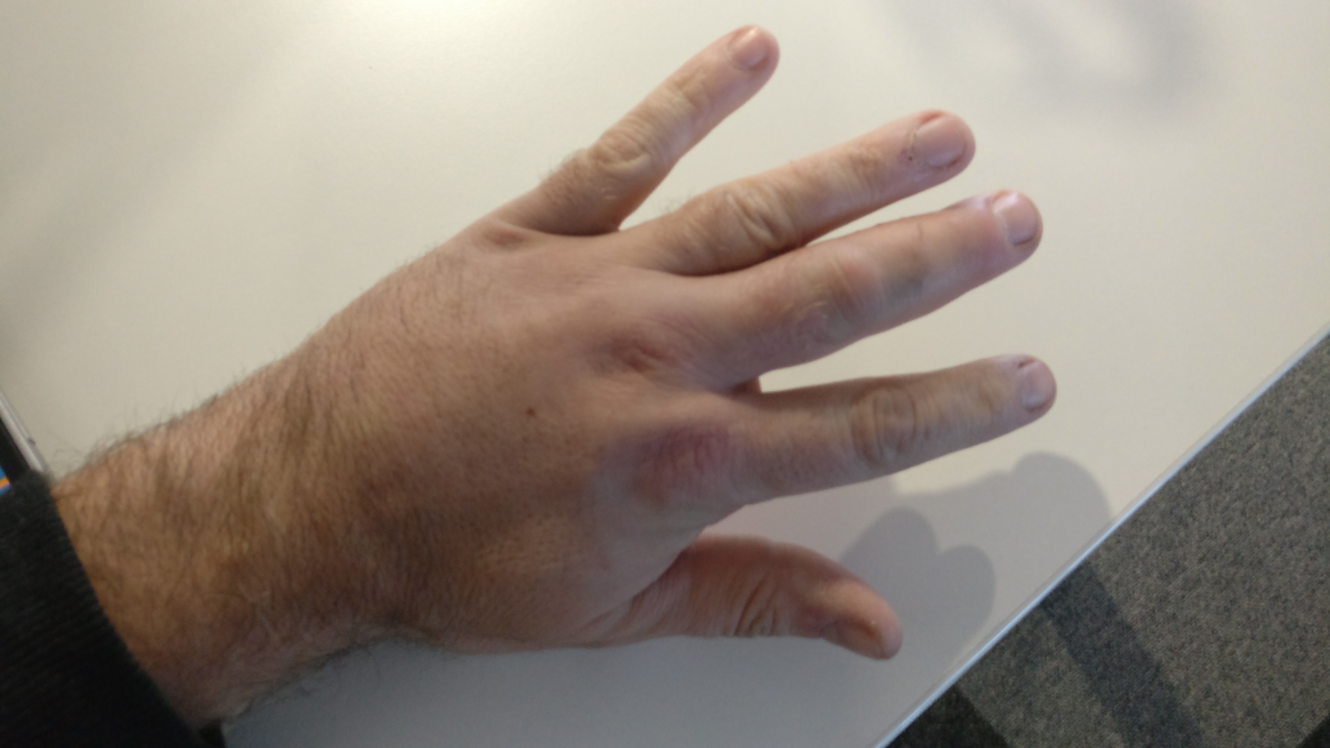 ok, beru to tak, že tento stav není stoper. Jakože ještě nějakej čas jsem mohl prstem hýbat. Takže bych asi potřebnou práci svedl dokončit po vpichu. Než natekl do nepohyblivého stavu to chvíli trvalo. ;) Teď (54h) už zase skoro sevřu pěst.