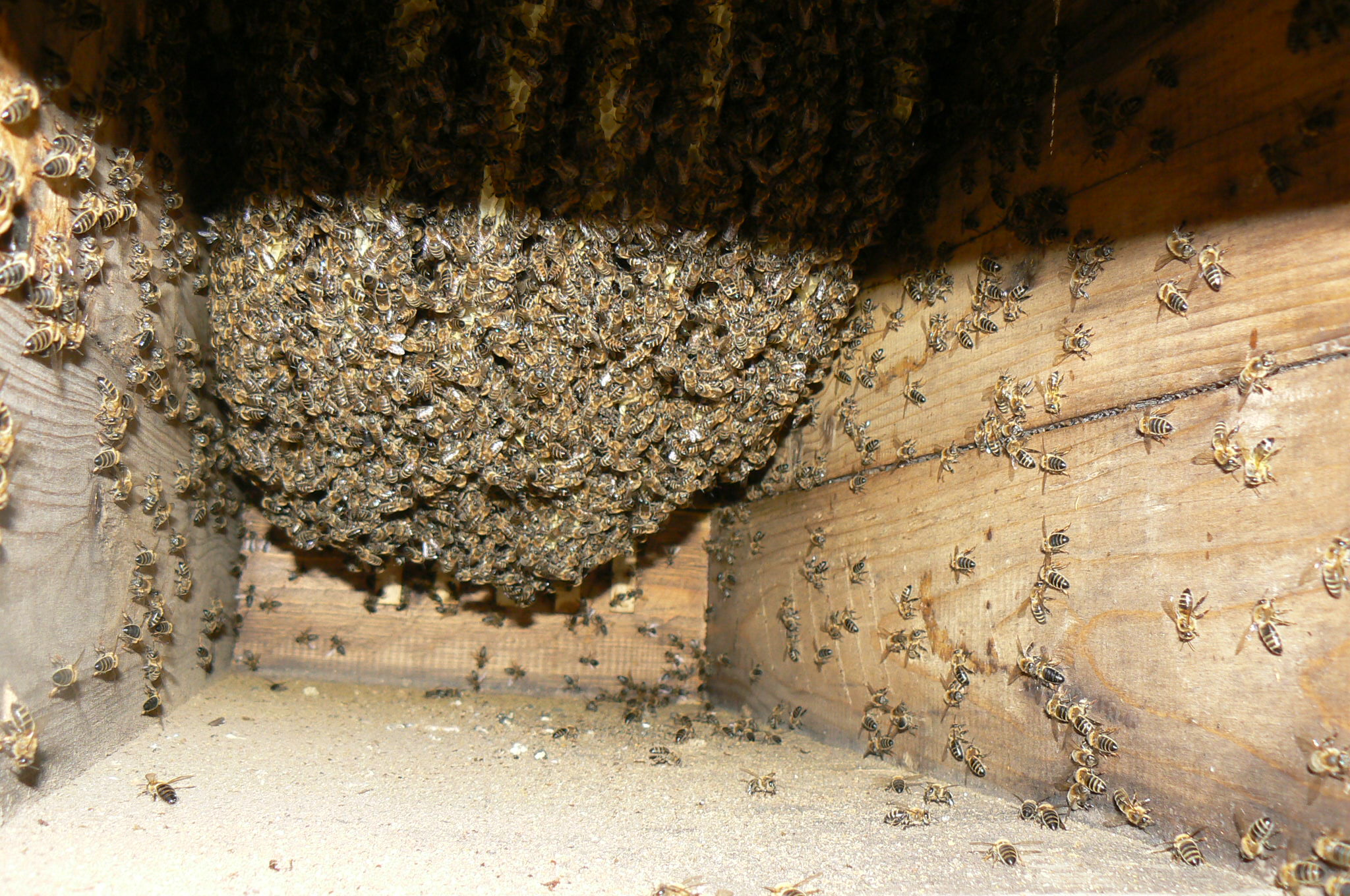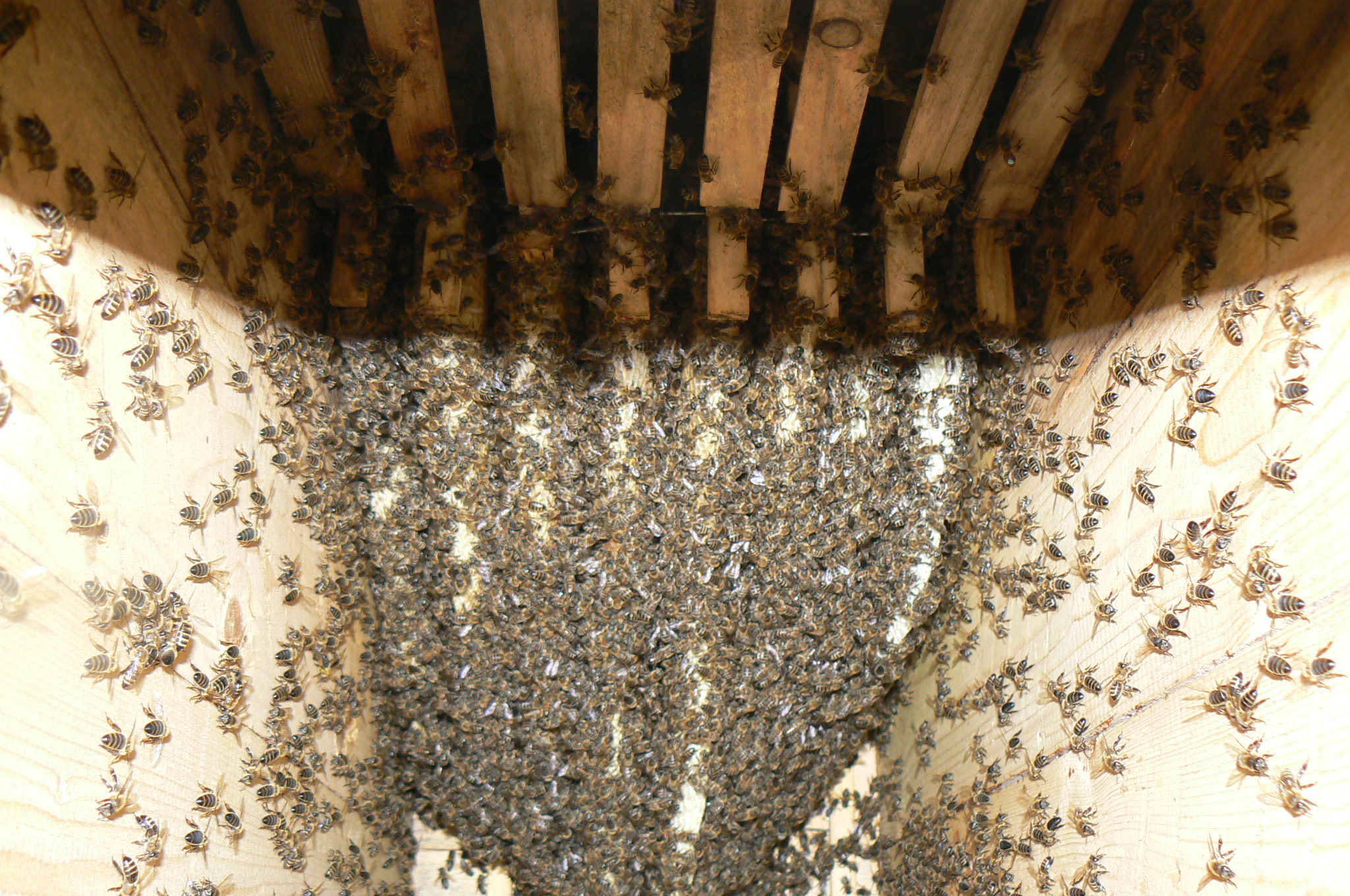 Jak jistě chápete, včely se zde chovají naprosto přirozeně, žádné rozšiřování, žádné zužování, přirozené zimování , staví si to co potřebují